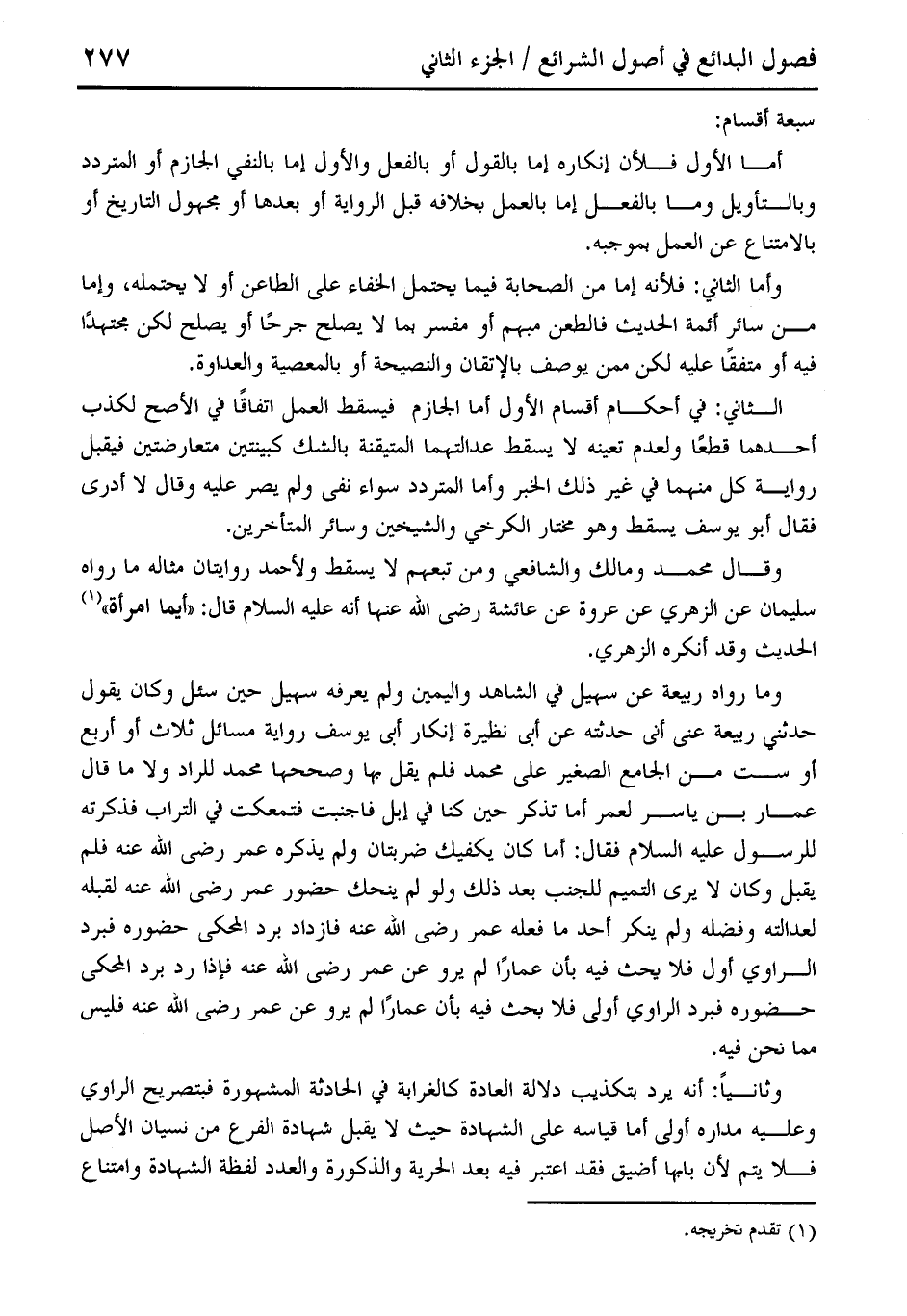 وثانيًا: أنه يرد بتكذيب دلالة العادة كالغرابة في الحادثة المشهورة فبتصريح الراوي وعليه مداره أولى أما قياسه على الشهادة حيث لا يقبل شهادة الفرع من نسيان الأصل فلا يتم لأن بابها أضيق فقد اعتبر فيه بعد الحرية والذكررة والعدد لفظة الشهادة وامتناع