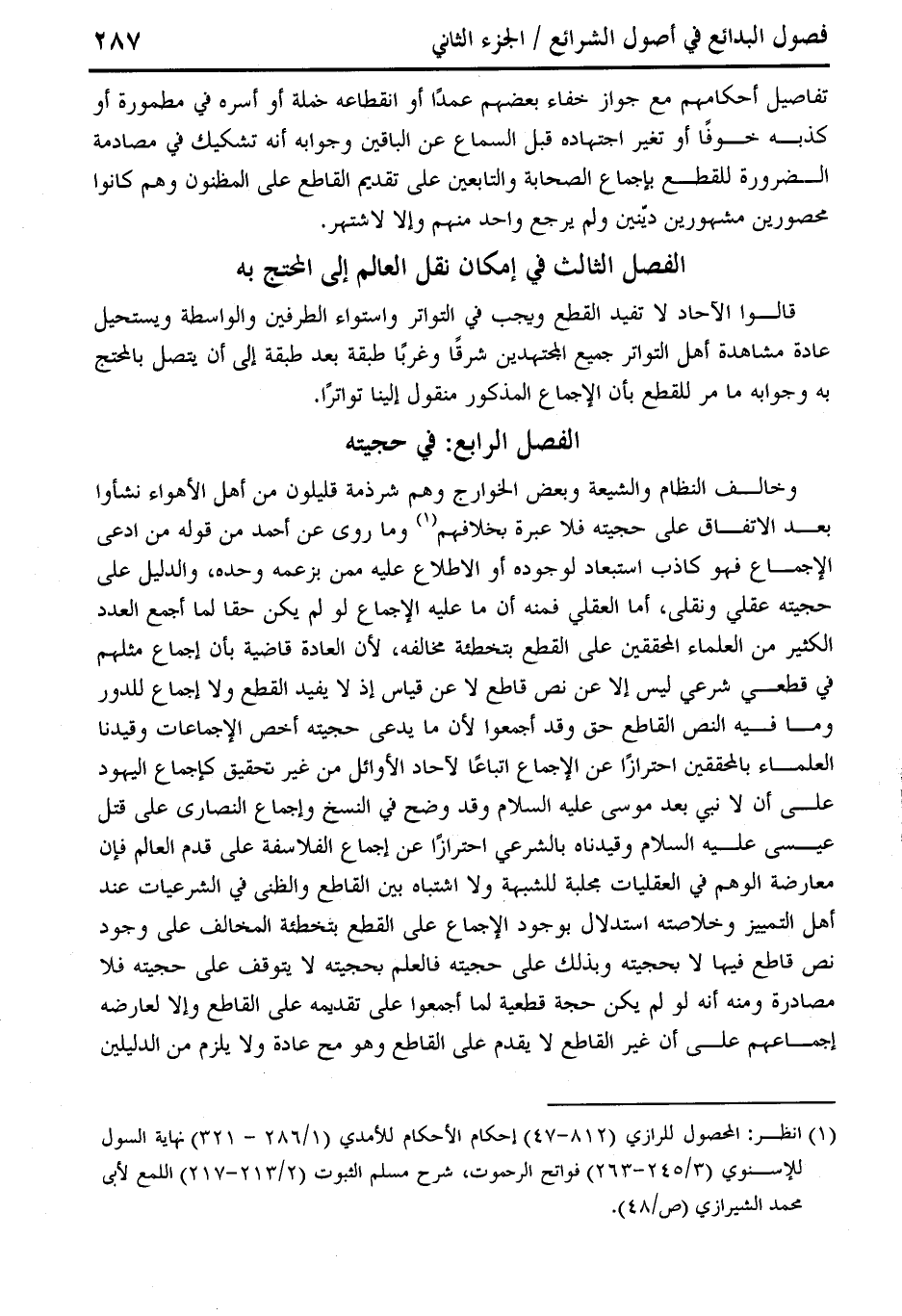 (¬1) انظر: المحصول للرازي (812 - 47) إحكام الأحكام للأمدي (1/ 286 - 321) نهاية السول للإسنوي (3/ 245 - 263) فواتح الرحموث، شرح مسلم الثبوت (2/ 213 - 217) اللمع لأبي محمَّد الشميرازي (ص / 48).