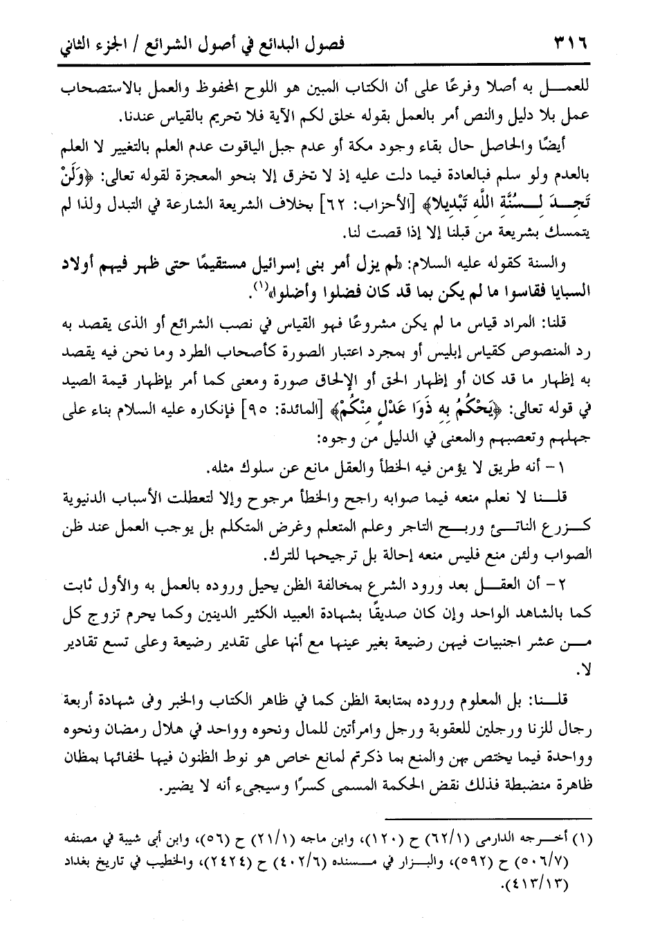 والسنة كقوله عليه السلام: "لم يزل أمر بني إسرائيل مستقيمًا حتى ظهر فيهم أولاد السبايا فقاسوا ما لم يكن بما قد كان فضلوا وأضلو" (¬1).