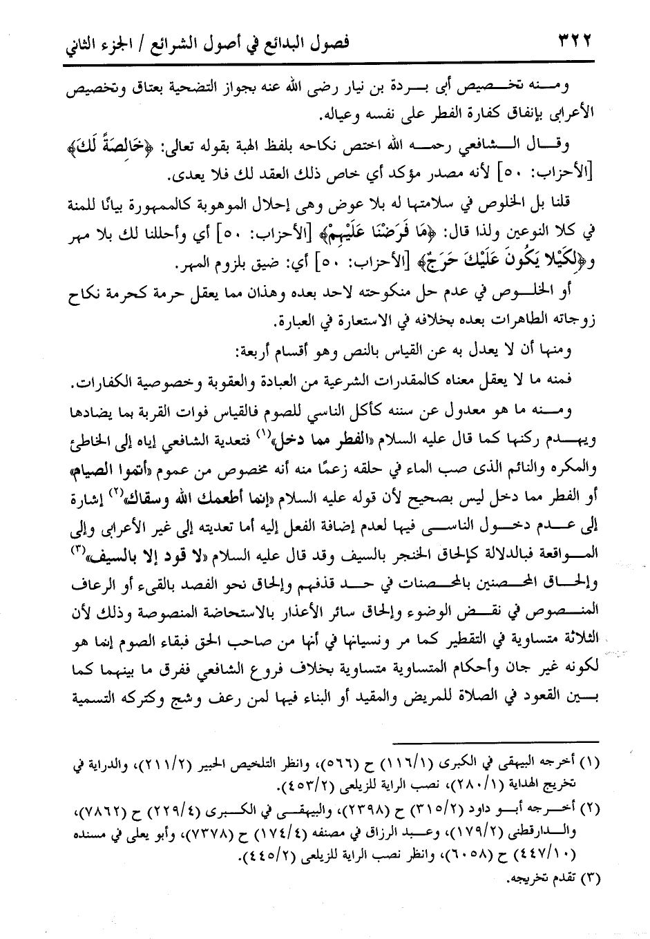 فمنه ما لا يعقل معناه كالمقدرات الشرعية من العبادة والعقوبة وخصوصية الكفارات. ومنه ما هو معدول عن سننه كأكل الناسي للصوم فالقياس ذوات القربةكا يضادها ويهدم ركنها كما قال عليه السلام "الفطر مما دخل" (¬1) فتعدية الشط فعي إياه إلى الخاطئ والمكره والنائم الذي صب الماء في حلقه زعمًا منه أنه مخصوص من عموم "ألقوا الصيام" أو الفطر مما دخل ليس بصحيح لأن قوله عليه السلام "إنما أطعمك الله وسقاك" (¬2) إشارة إلى عدم دخول الناسي فيها لعدم إضافة الفعل إليه أما تعديته إلى غير الأعرابي وإلى المواقعة فبالدلالة كإلحاق الخنجر بالسيف وقد قال عليه السلام "لا قود إلا بالسيف" (¬3) وإلحاق المحصنين بالمحصنات في حد قذفهم وإلحاق نحو القصد بالقيء أو الرعاف المنصوص في نقض الوضوء وإلحاق سائر الأعذار بالاستحاضة المنصوصة وذلك لأن الثلاثة متساوية في التقطير كما مر ونسيانها لق أنها من صاحب الحق فبقاء الصوم إنما هو لكونه غير جان وأحكام المتساوية متساوية بخلاف فروع الشافعي ففرق ما بينهما كما بين القعود في الصلاة للمريض والمقيد أو البناء فيها لمن رعف وشج وكتركه التسمية