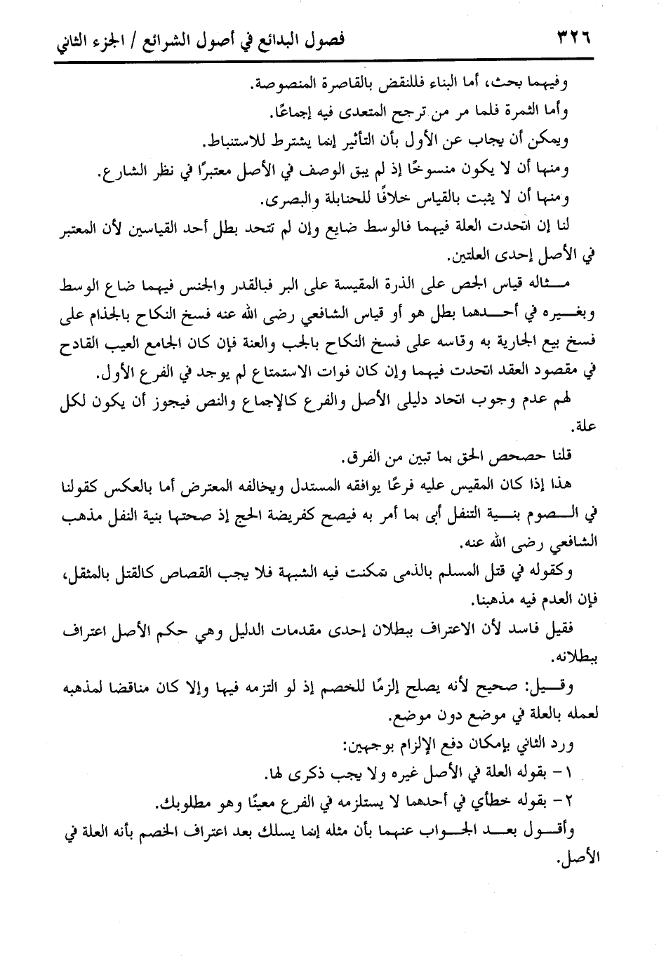 1 - بقوله العلة في الأصل غيره ولا يجب ذكرى لها.
