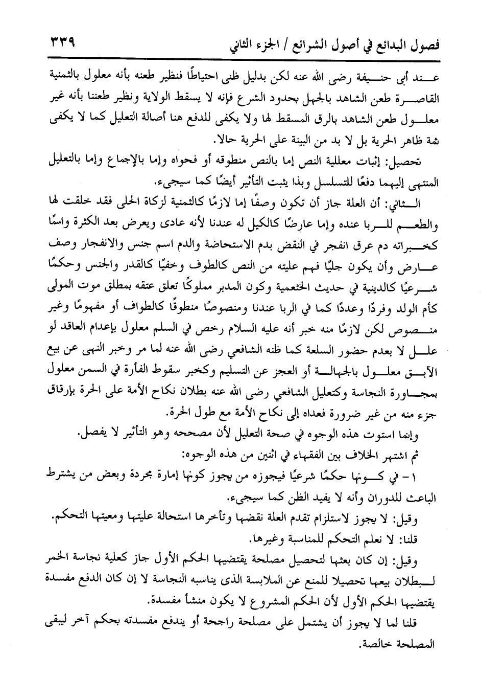 عند أبى حنيفة رضي الله عنه لكن بدليل ظني احتياطًا فنظير طعنه بأنه معلول بالثمنية القاصرة طعن الشاهد بالجهل بحدود الشرع فإنه لا يسقط الولاية ونظير طعننا بأنه غير معلول طعن الشاهد بالرق المسقط لها ولا يكفى للدفع هنا أصالة التعليل كما لا يكفى ثمة ظاهر الحرية بل لا بد من البينة على الحرية حالا.