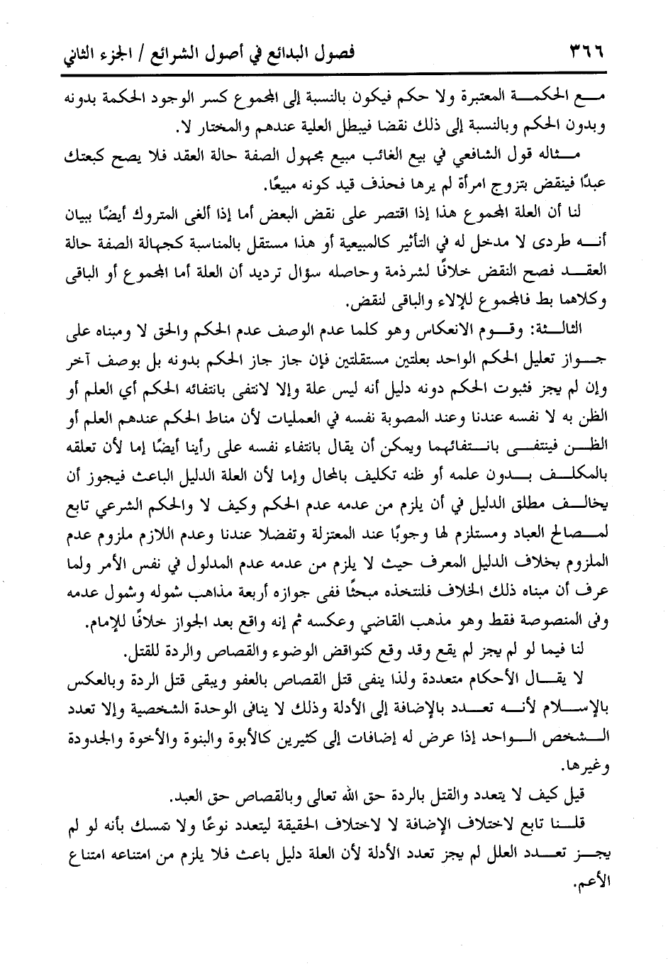 قلنا تابع لاختلاف الإضافة لا لاختلاف الحقيقة ليتعدد نوعًا ولا تمسك بأنه لو لم يجز تعدد العلل لم يجز تعدد الأدلة لأن العلة دليل باعث فلا يلزم من امتناعه امتناع الأعم.