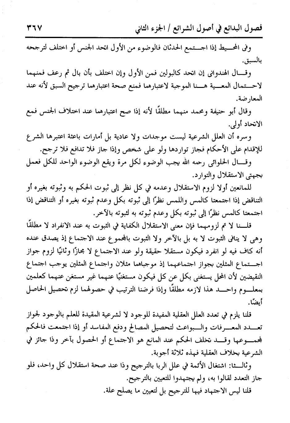 وثالثا: اشتغال الأئمة في علل الربا بالترجيح وذا عند صحة استقلال كل واحد، فلو جاز التعدد لقالوا به، ولم يجتهدوا للتعيين بالترجيح.