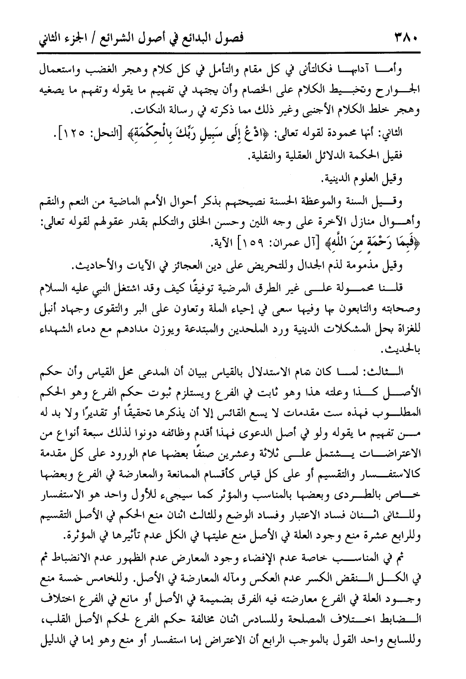 وأما آدابها فكالتأني في كل مقام والتأمل في كل كلام وهجر الغضب واستعمال الجوارح وتخبيط الكلام على الخصام وأن يجتهد في تفهيم ما يقوله وتفهم ما يصغيه وهجر خلط الكلام الأجنبى وغير ذلك مما ذكرته في رسالة النكات.