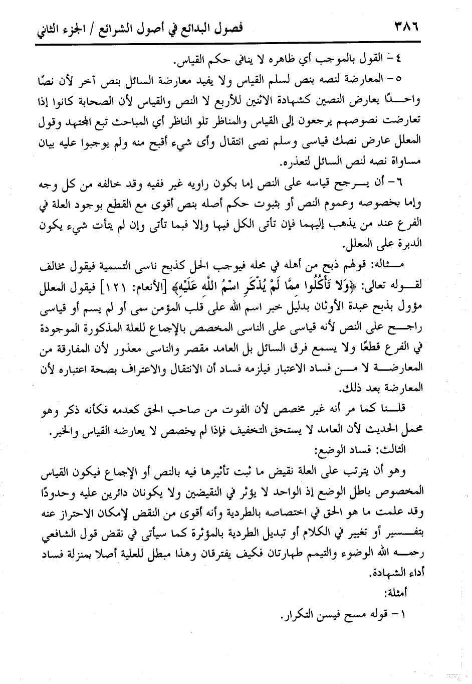 5 - المعارضة لنصه بنص لسلم القياس ولا يفيد معارضة السائل بنص آخر لأن نصًا واحدًا يعارض النصين كشهادة الاثنين للأربع لا النص والقياس لأن الصحابة كانوا إذا تعارضت نصوصهم يرجعون إلى القياس والمناظر تلو الناظر أي المباحث تبع المجتهد وقول المعلل عارض نصك قياسى وسلم نصى انتقال وأى شيء أقبح منه ولم يوجبوا عليه بيان مساواة نصه لنص السائل لتعذره.