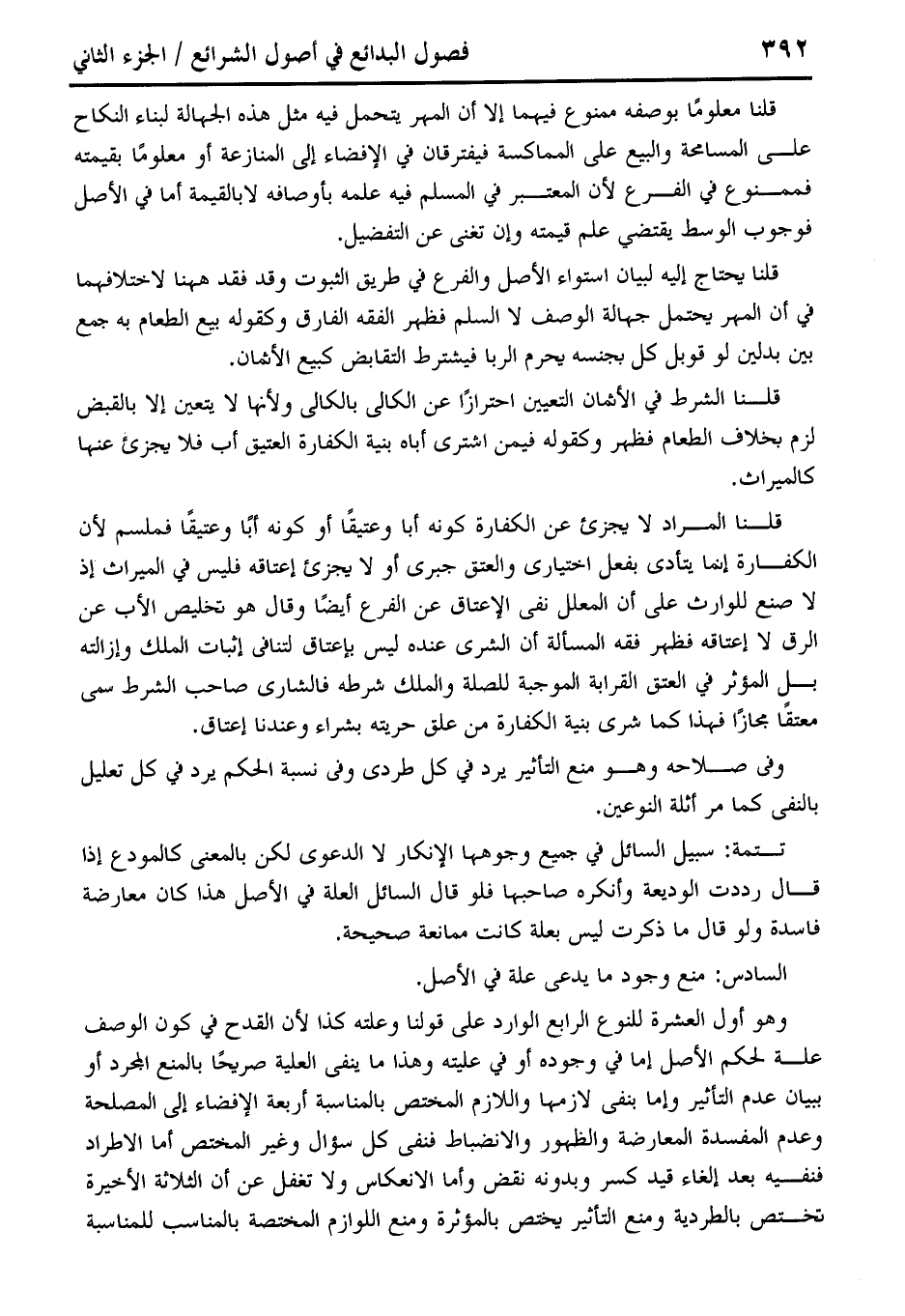 السادس: منع وجود ما يدعى علة في الأصل.