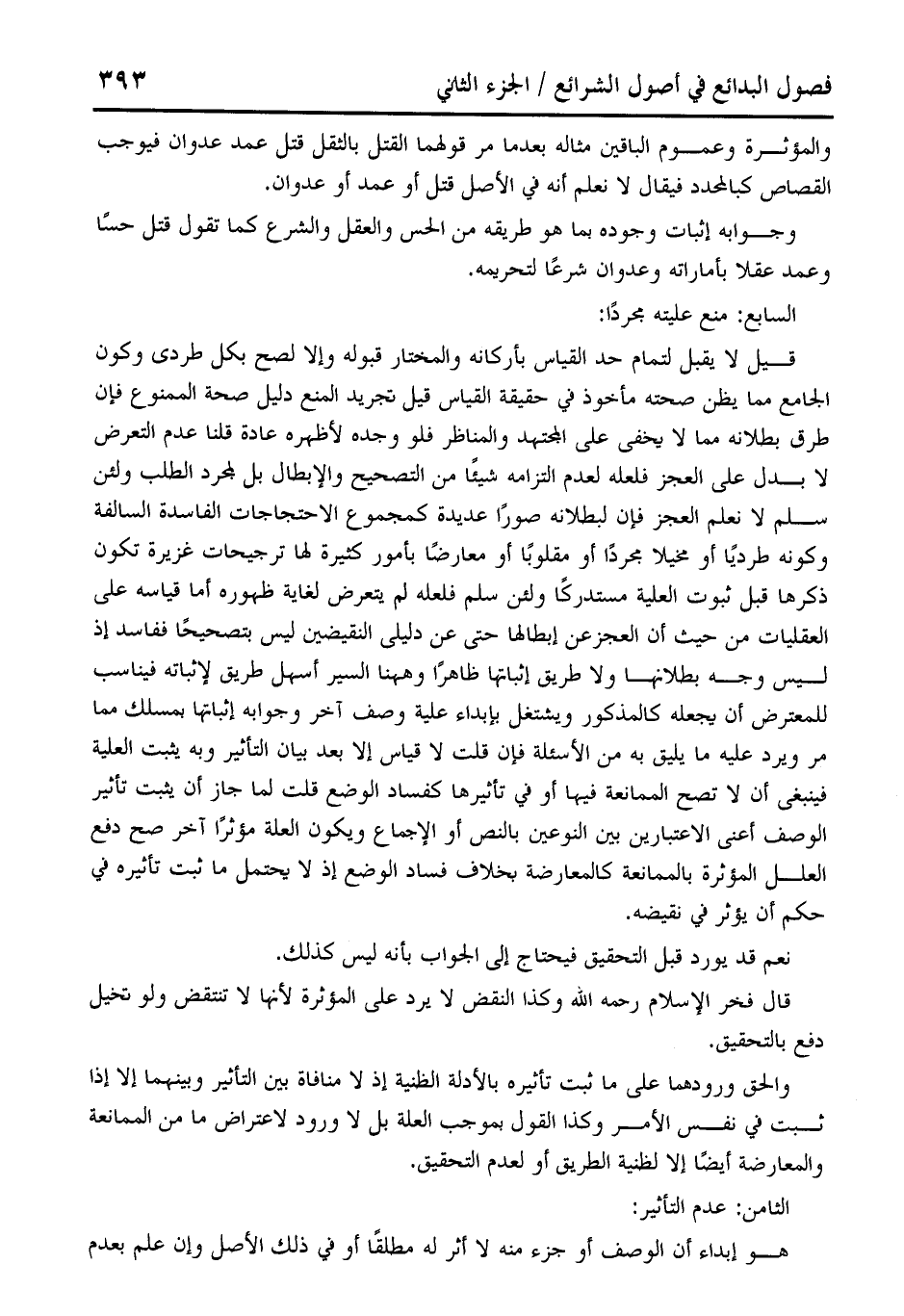 والمؤثرة وعموم الباقين مثاله بعدما مر قولهما القتل بالثقل قتل عمد عدوان فيوجب القصاص كبالمحدد فيقال لا نعلم أنه في الأصل قتل أو عمد أو عدوان.