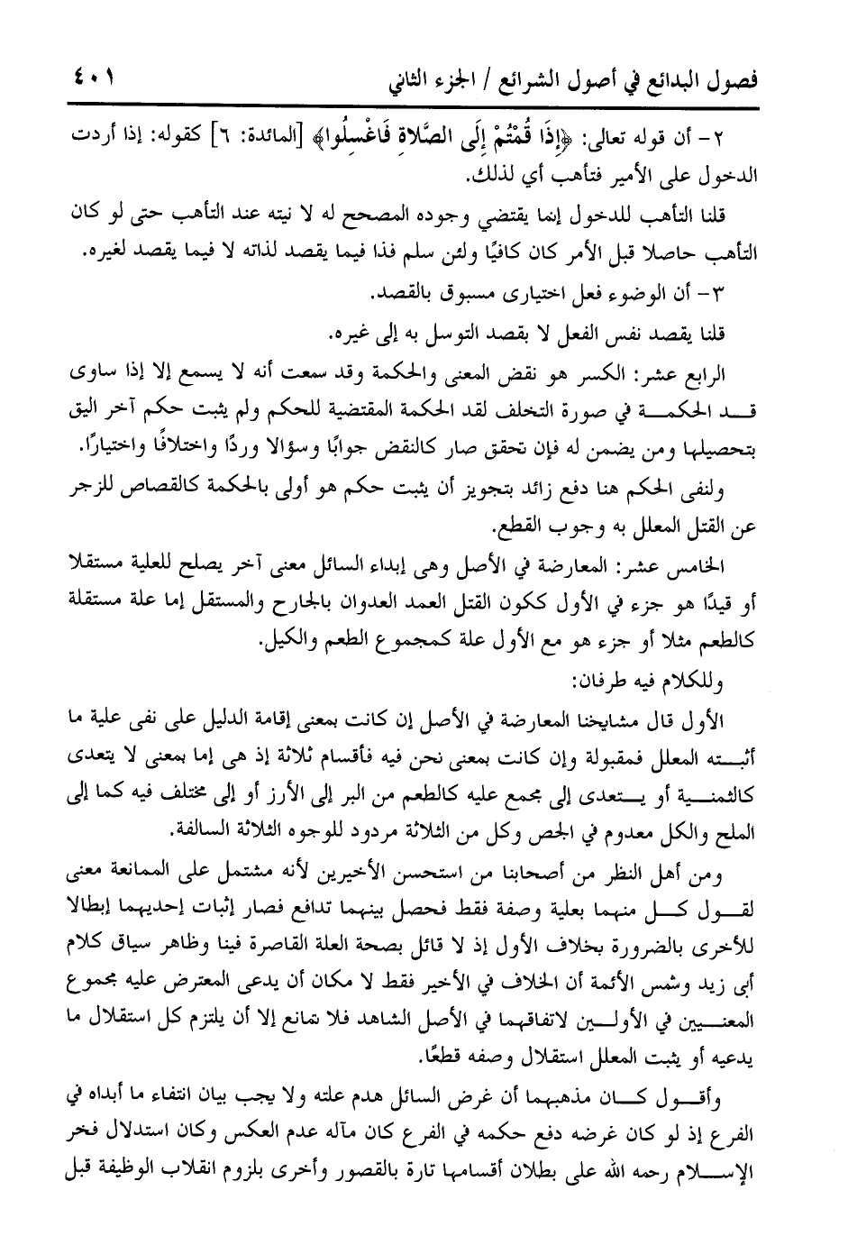 الخامس عشر: المعارضة في الأصل وهي إبداء السائل معنى آخر يصلح للعلية مستقلا أو قيدًا هو جزء في الأول ككون القتل العمد العدوان بالجارح والمستقل إما علة مستقلة كالطعم مثلا أو جزء هو مع الأول علة كمجموع الطعم والكيل.