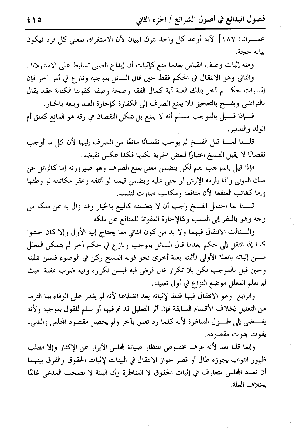 وإنما قلنا يعد لأنه عرف مخصوص للنظار صيانة لمجلس الأبرار عن الإكثار وإلا فطلب ظهور الثواب يجوزه طال أو قصر جواز الانتقال في البينات لإثبات الحقوق والفرق بينهما أن تعدد المجلس متعارف في إثباث الحقوق لا المناظرة وأن البينة لا تصحب المدعى غالبًا بخلاف العلة.