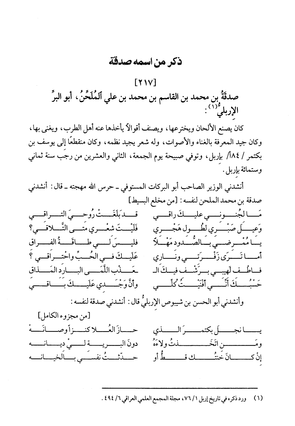 صدقة بن محمد بن القاسم بن محمد بن علي الملحن، أبو البر الإربلي: