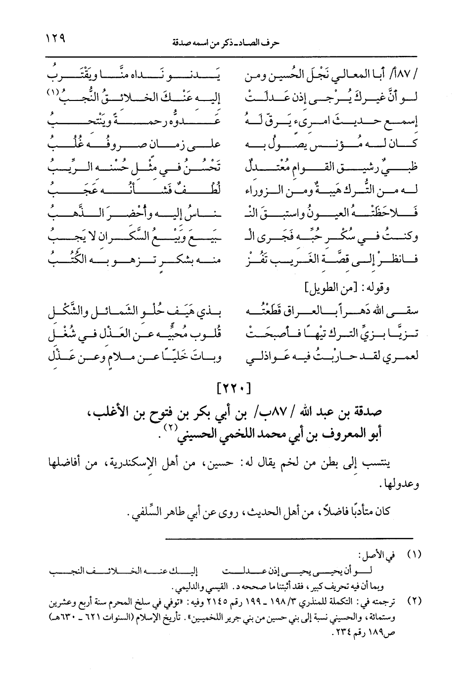 صدقة بن عبد الله /87 ب/ بن أبي بكر بن فتوح بن الأغلب، أبو المعروف بن أبي محمد اللخمي الحسيني.