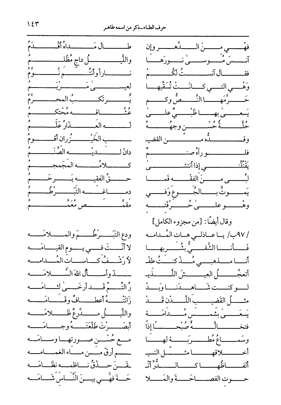 /97 ب/ يا عاذلي هات المدامه ... ودع التبرطم والملامه