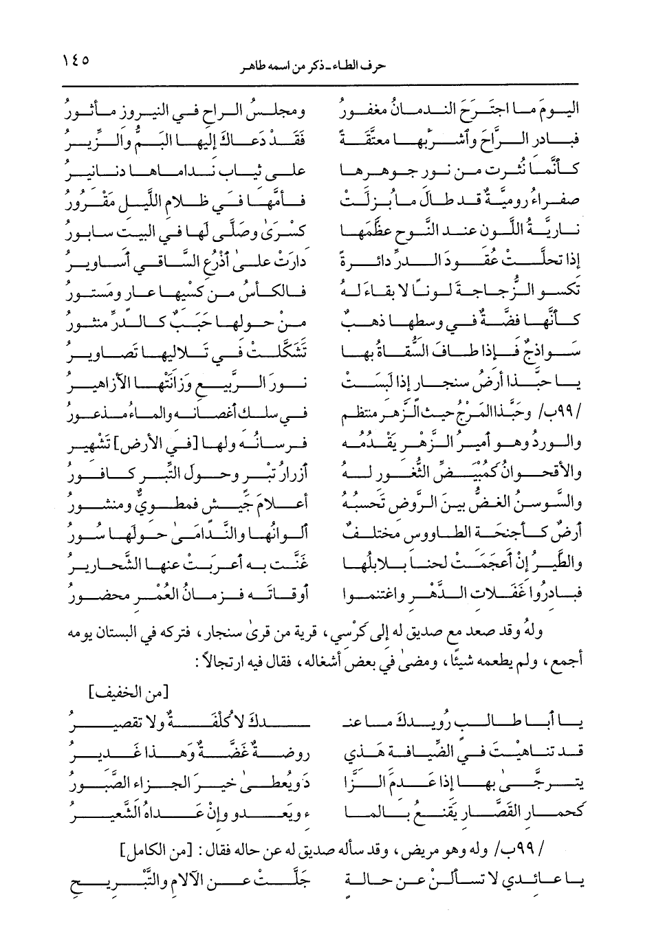/99 ب/ وحبَّذا المرج حيث الزَّهر منتظم ... في سلك أغصانه والماء مذعور