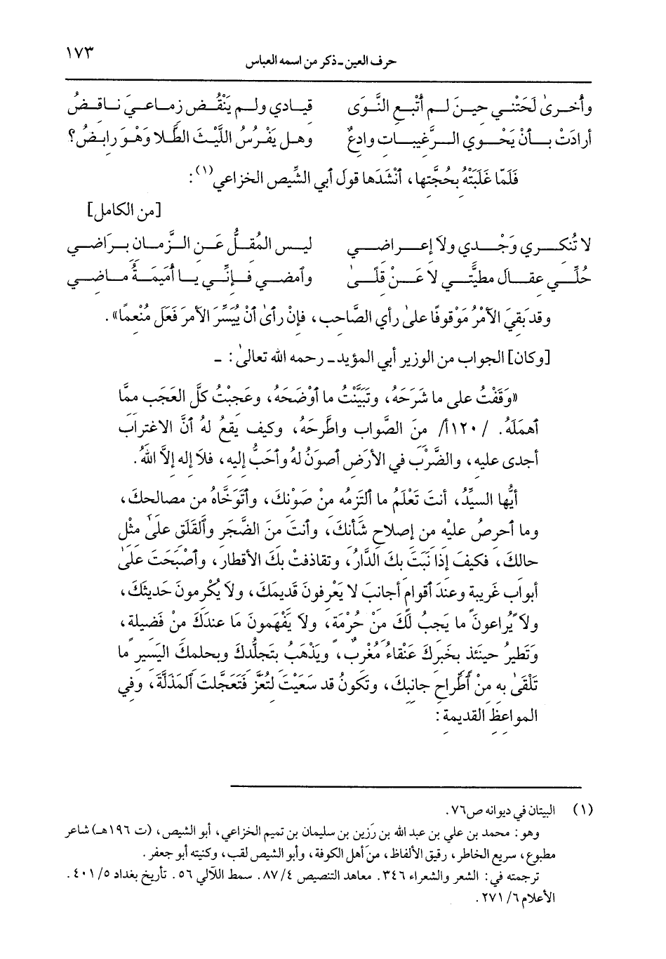 [وكان] الجواب من الوزير أبي المؤيد –رحمه الله تعالى: -