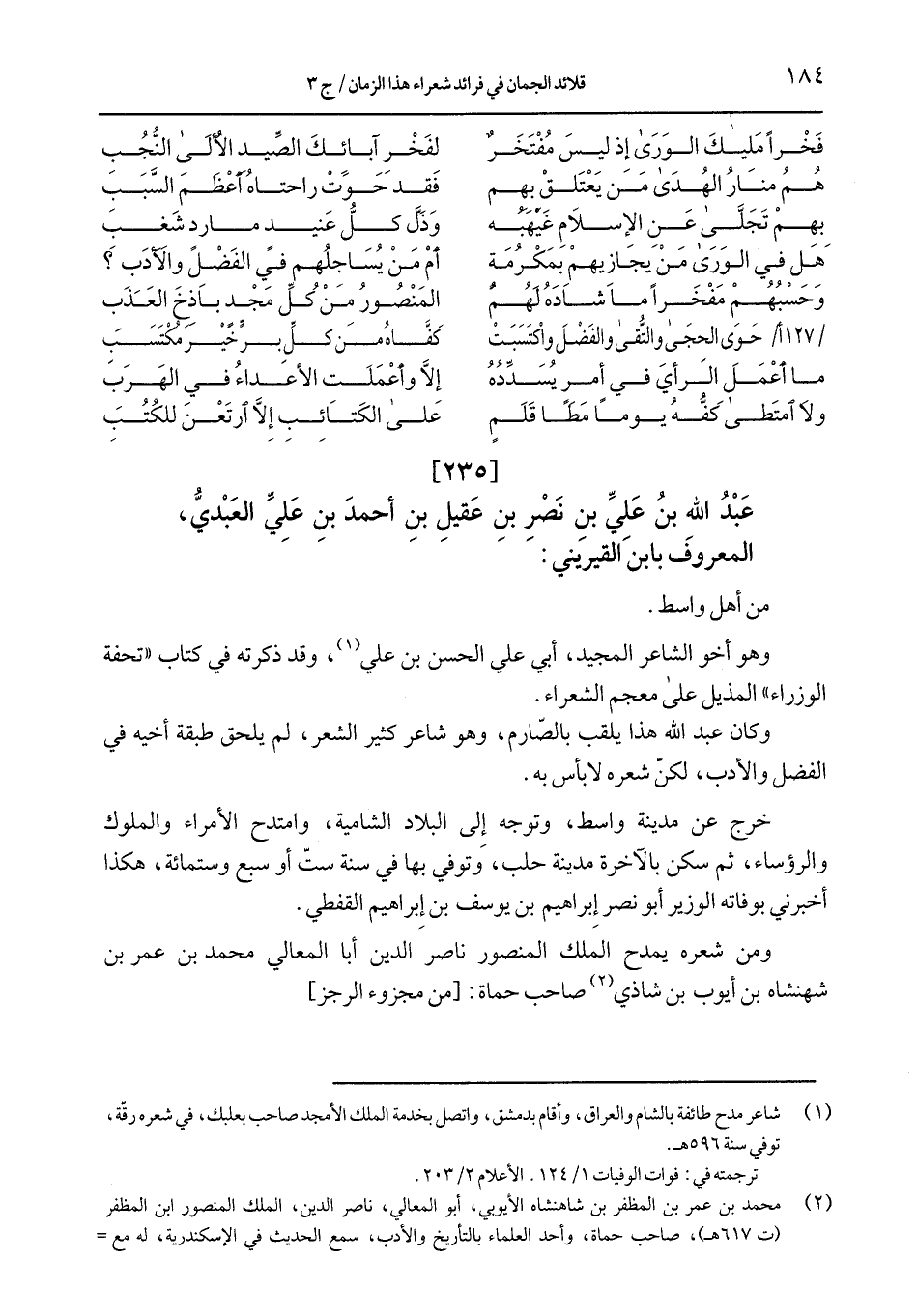كتاب قلائد الجمان في فرائد شعراء هذا الزمان (اسم الجزء: 2)