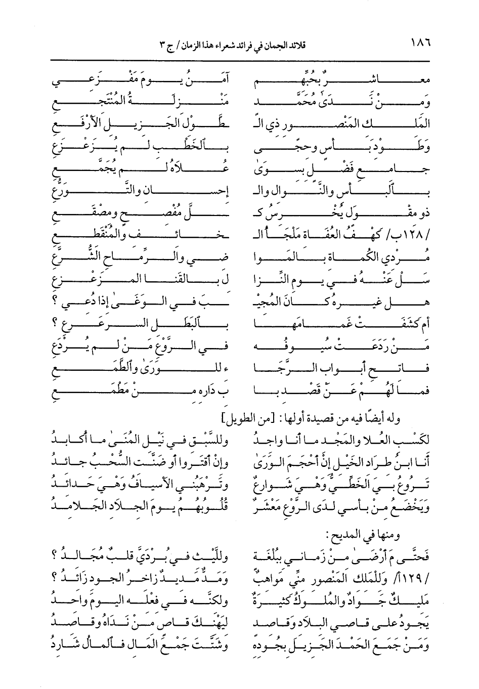 / 129 أ/ وللملك المنصور منِّي مواهب ... ومد مديد زاخر الجود زائد؟