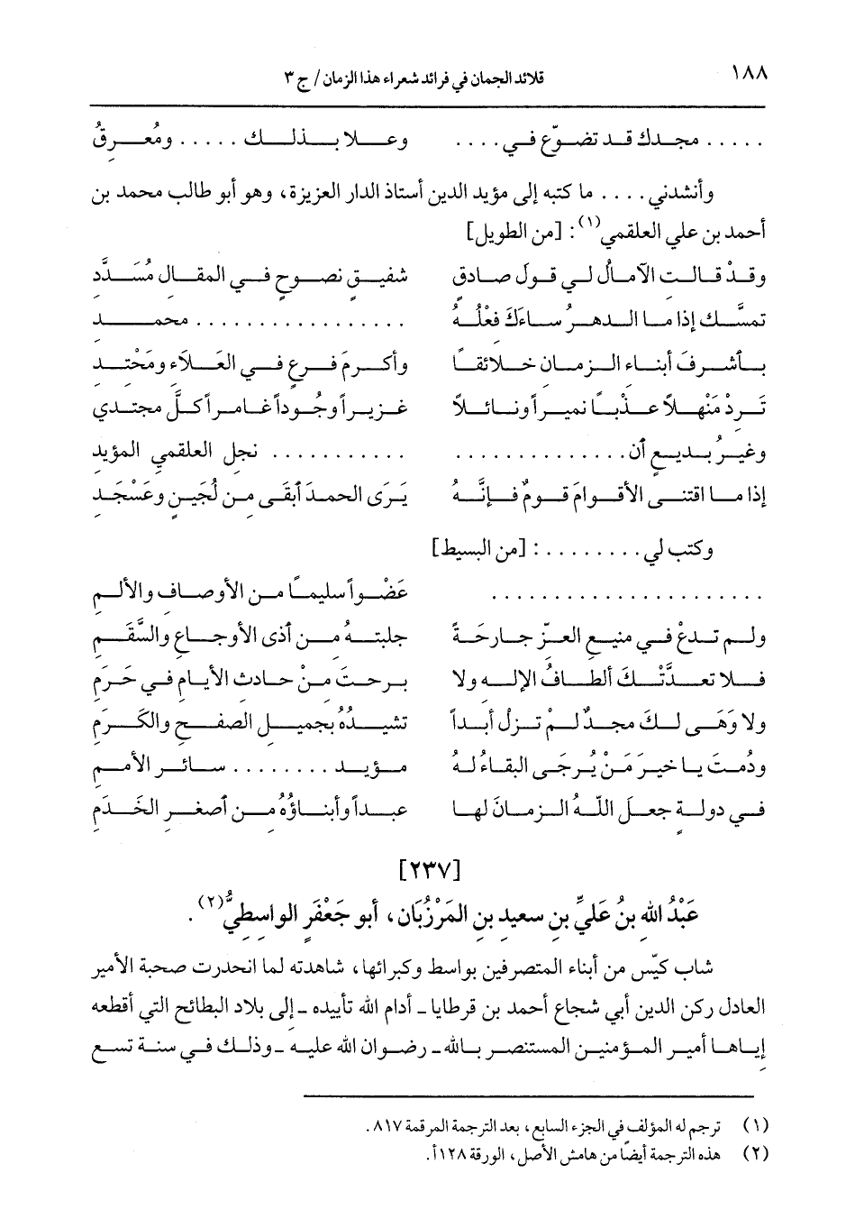 كتاب قلائد الجمان في فرائد شعراء هذا الزمان (اسم الجزء: 2)