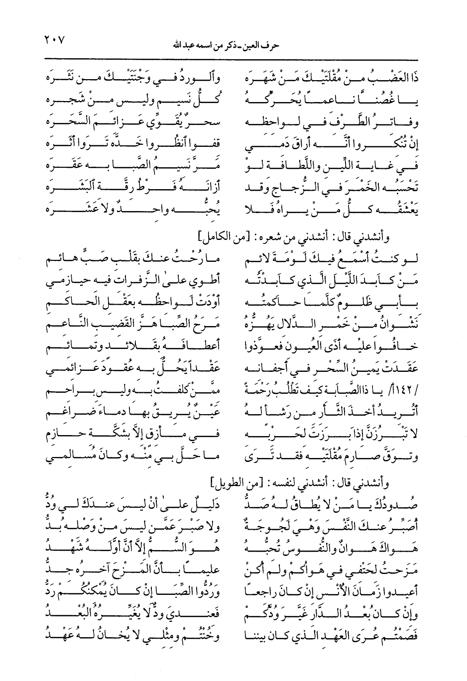 وأنشدني قال: أنشدني من شعره: [من الكامل]