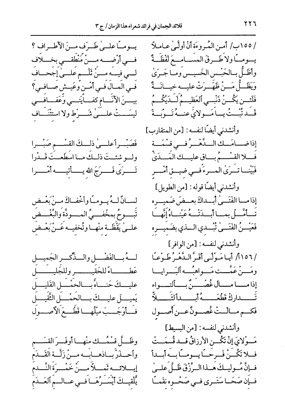 / 155 ب/ أمن المروءة أن أولَّى عاملاً ... يومًا على طرف من الأطراف؟
