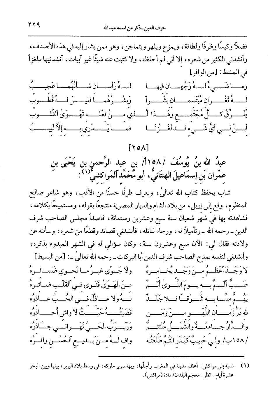 عبد الله بن يوسف/ 158 أ/ بن عبد الرَّحمن بن يحيى بن عمران بن إسماعيل الهنتانيُّ، أبو محمَّد المراكشيُّ: