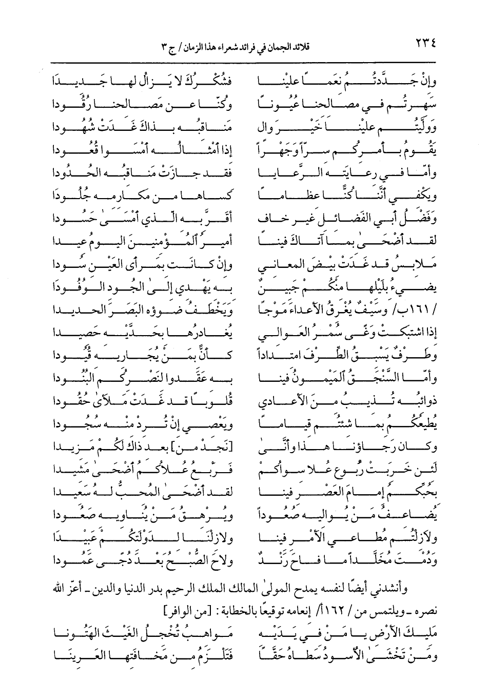 كتاب قلائد الجمان في فرائد شعراء هذا الزمان (اسم الجزء: 2)