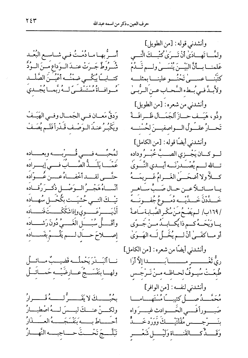 / 169 ب/ لم يصح من سكر الصَّبابة ساعًة ... أن يرعوي وإذا شككت فناده