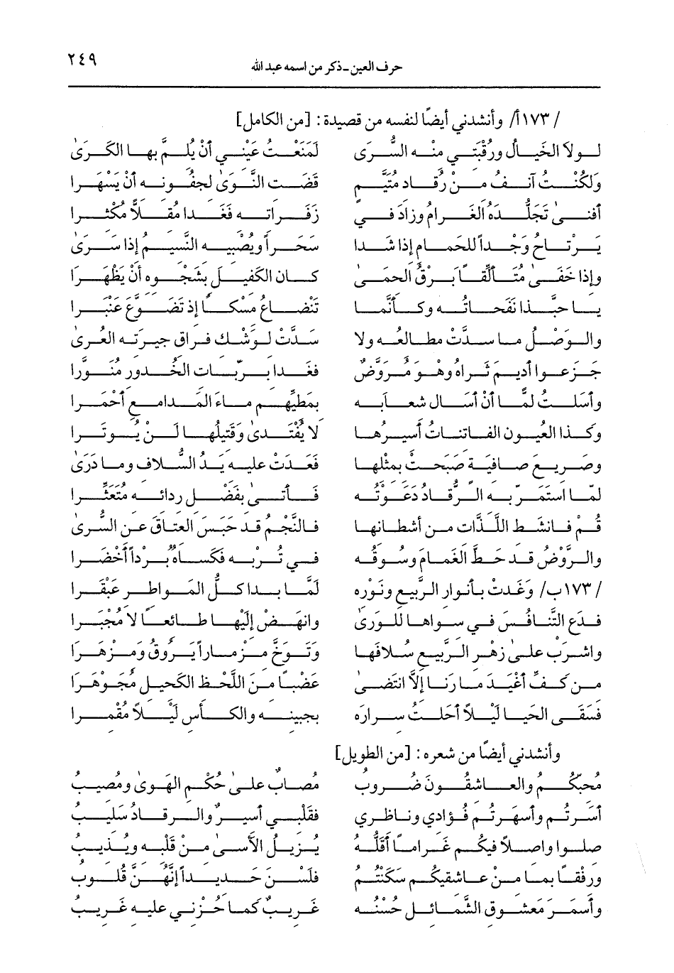 / 173 أ/ وأنشدني أيضًا لنفسه من قصيدة: [من الكامل]