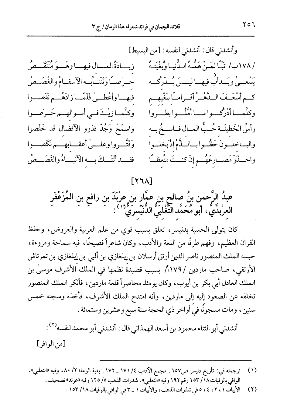 / 178 ب/ تبًا لمن همُّه الدُّنيا وبغيته ... زيادة المال فيها وهو منتقص