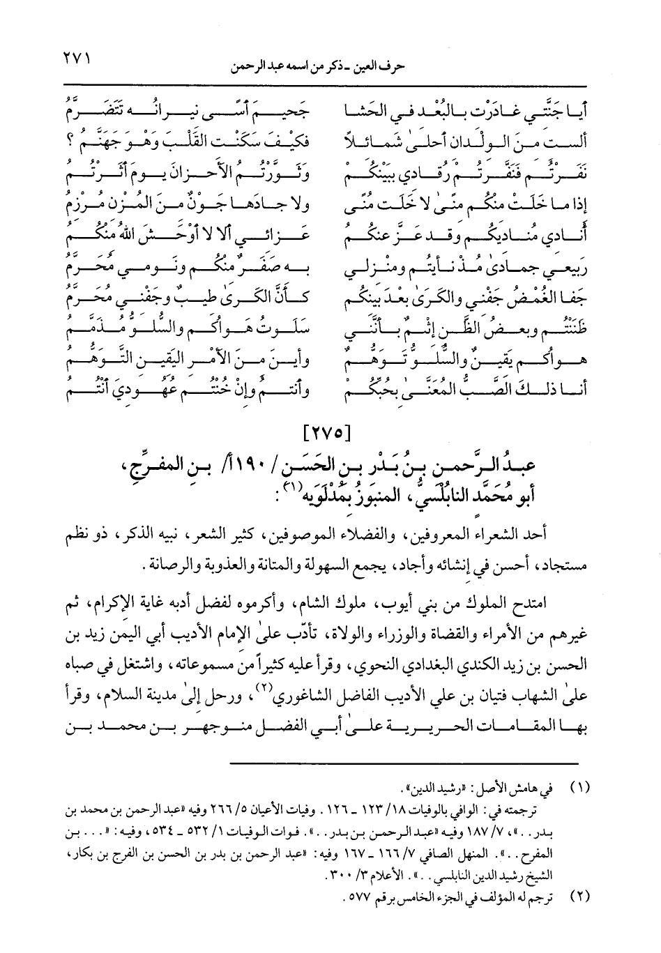 عبد الرَّحمن بن بدر بن الحسن/ 190 أ/ بن المفرِّج، أبو محمَّد النابلسيُّ، المنبوز بمدلويه: