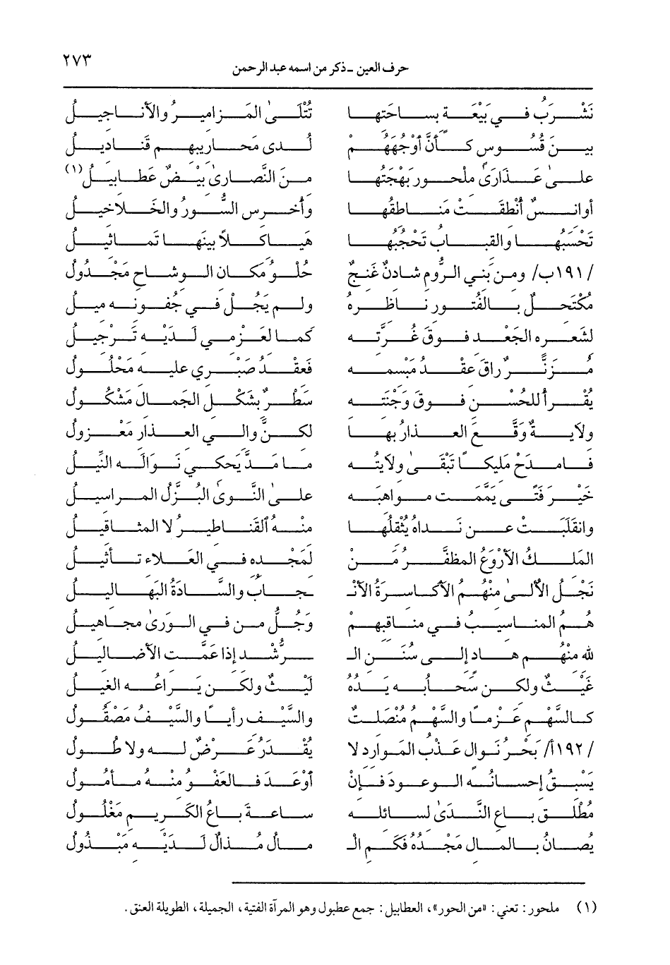 / 191 ب/ ومن بني الرُّوم شاذن غنج ... حلو مكان الوشاح مجدول