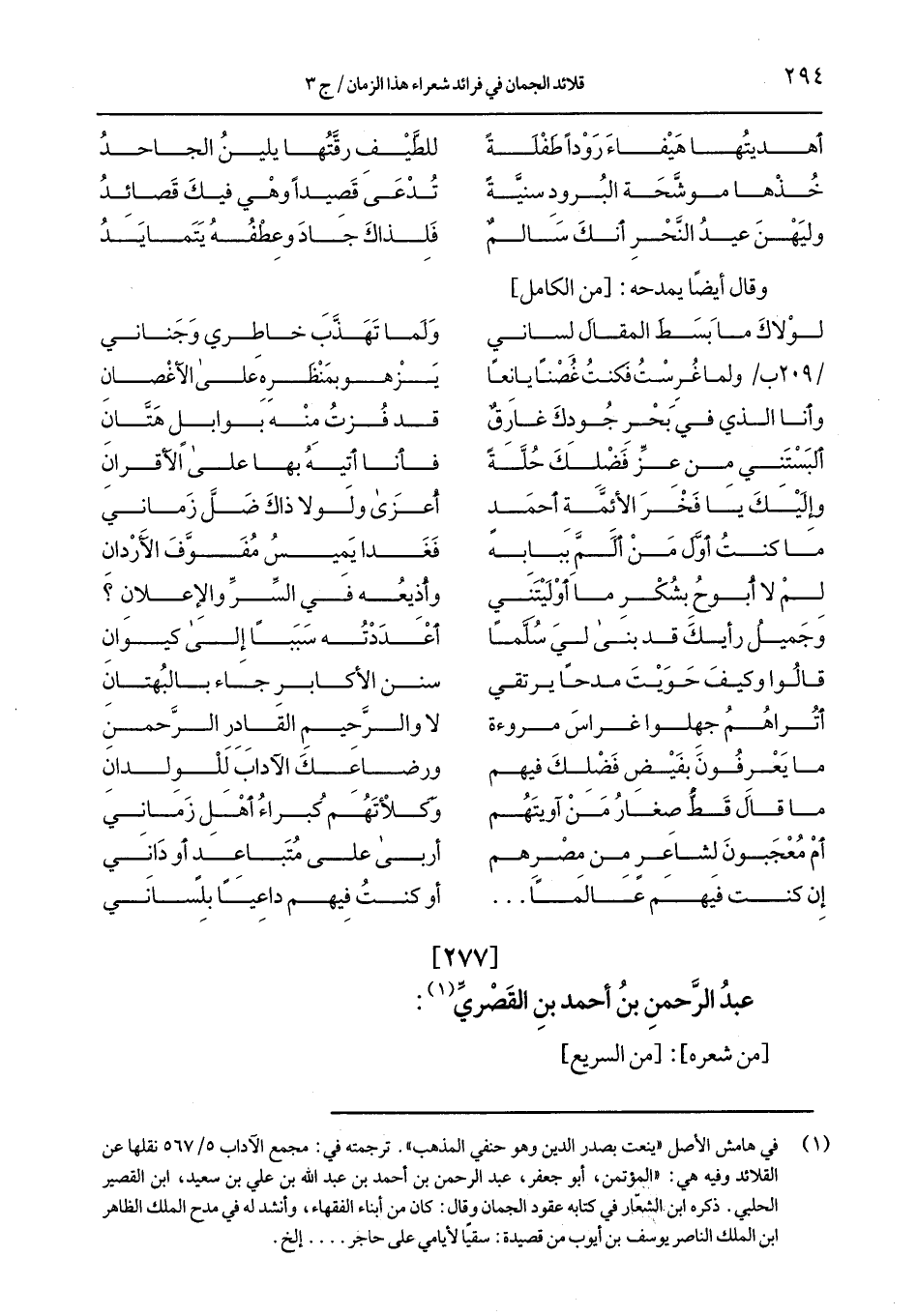كتاب قلائد الجمان في فرائد شعراء هذا الزمان (اسم الجزء: 2)
