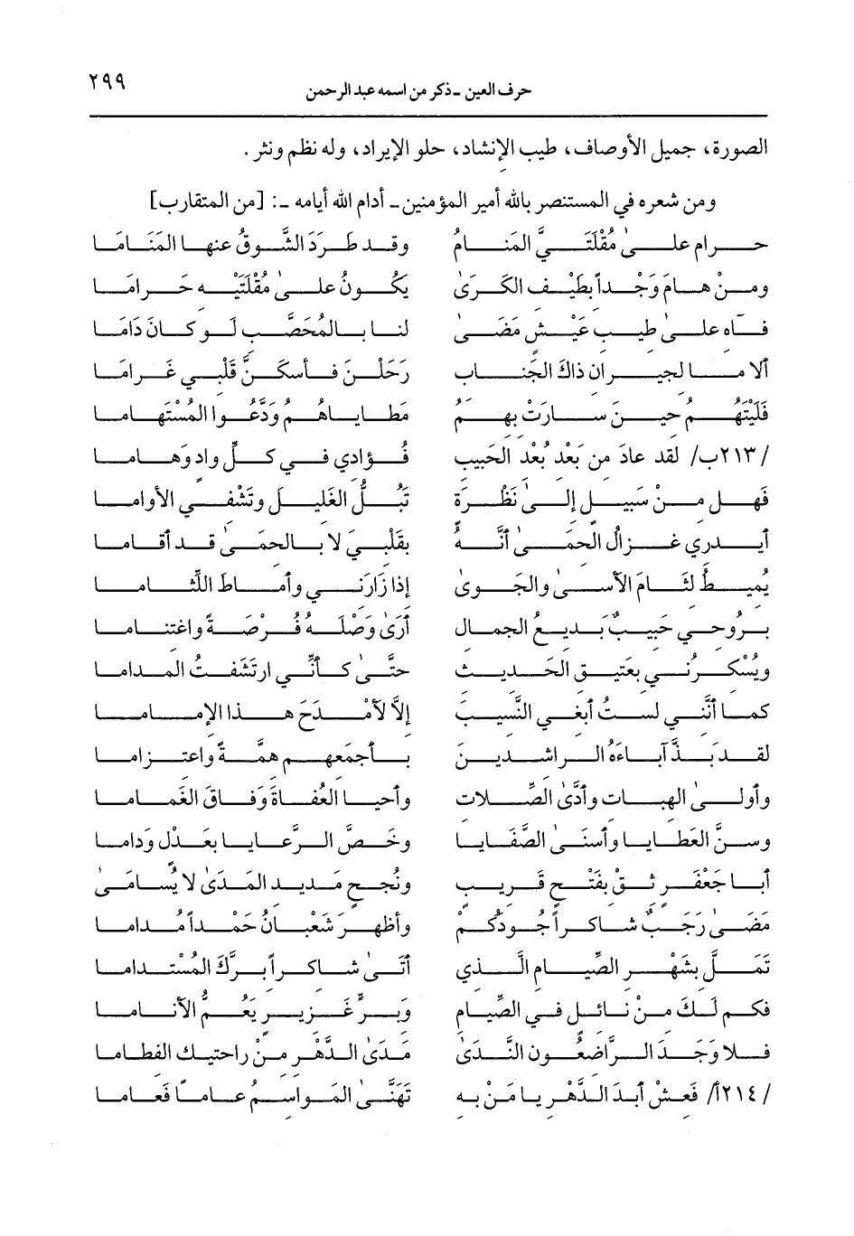 / 213 ب/ لقد عاد من بعد بعد الحبيب ... فؤادي في كلِّ واد وهاما
