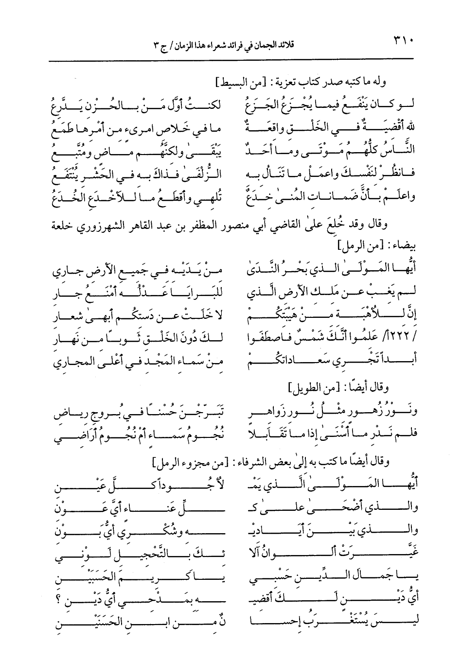 كتاب قلائد الجمان في فرائد شعراء هذا الزمان (اسم الجزء: 2)