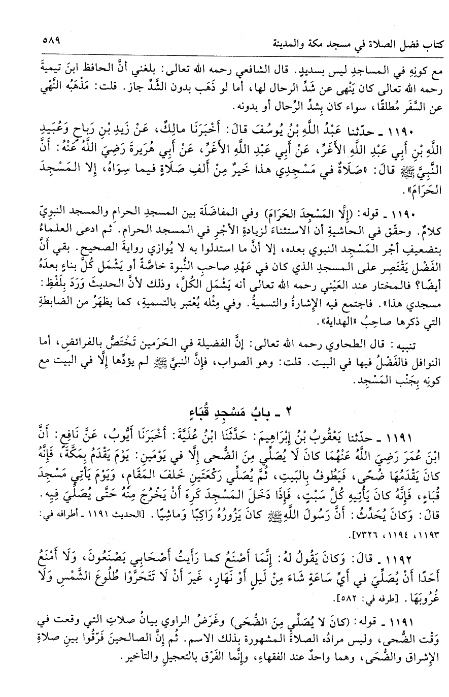 1190 - قوله: (إِلا المَسْجِدَ الحَرَامَ) وفي المفاضَلَة بين المسجدِ الحرامِ والمسجد النبوِيّ كلامٌ. وحقّق في الحاشيةِ أن الاستثناءَ لزيادةِ الأجْرِ في المسجد الحرام. ثم ادعى العلماءُ بتضعيفِ أجْر المَسْجِد النبوي بعده، إلا أنَّ ما استدلوا به لا يُوازي روايةَ الصحيح. بقي أَنَّ الفَضْل يَقْتَصِر على المسجدِ الذي كان في عَهْدِ صاحبِ النُّبوة خاصَّةً أو يَشْمَل كُلَّ بناءٍ بعدَهُ أيضًا؟ فالمختار عند العَيْني رحمه الله تعالى أنه يَشْمَل الكُلَّ، وذلك لأنَّ الحديثَ وَرَدَ بِلَفْظِ: مسجدي هذا». فاجتمع فيه الإِشارةُ والتسميةُ. وفي مِثْله يُعْتبر بالتسميةِ، كما يظهَرُ من الضابطةِ التي ذكرها صاحِبُ «الهداية».