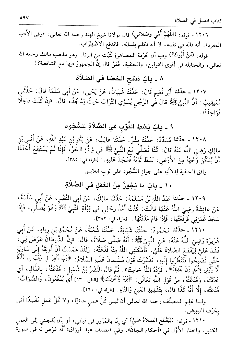 10 - باب مَا يَجُوزُ مِنَ الْعَمَلِ فِى الصَّلاَةِ