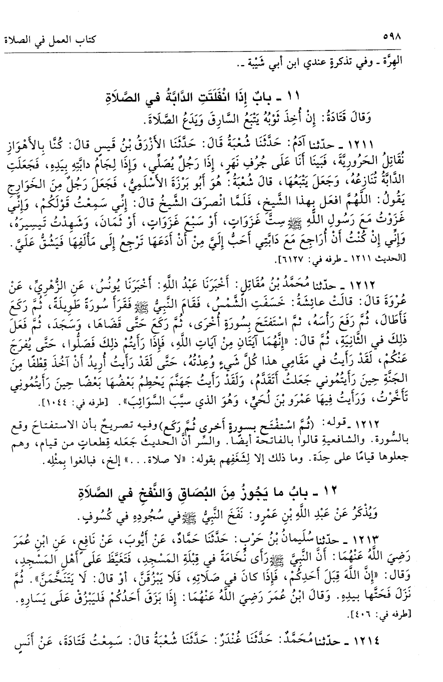 11 - باب إِذَا انْفَلَتَتِ الدَّابَّةُ فِى الصَّلاَةِ