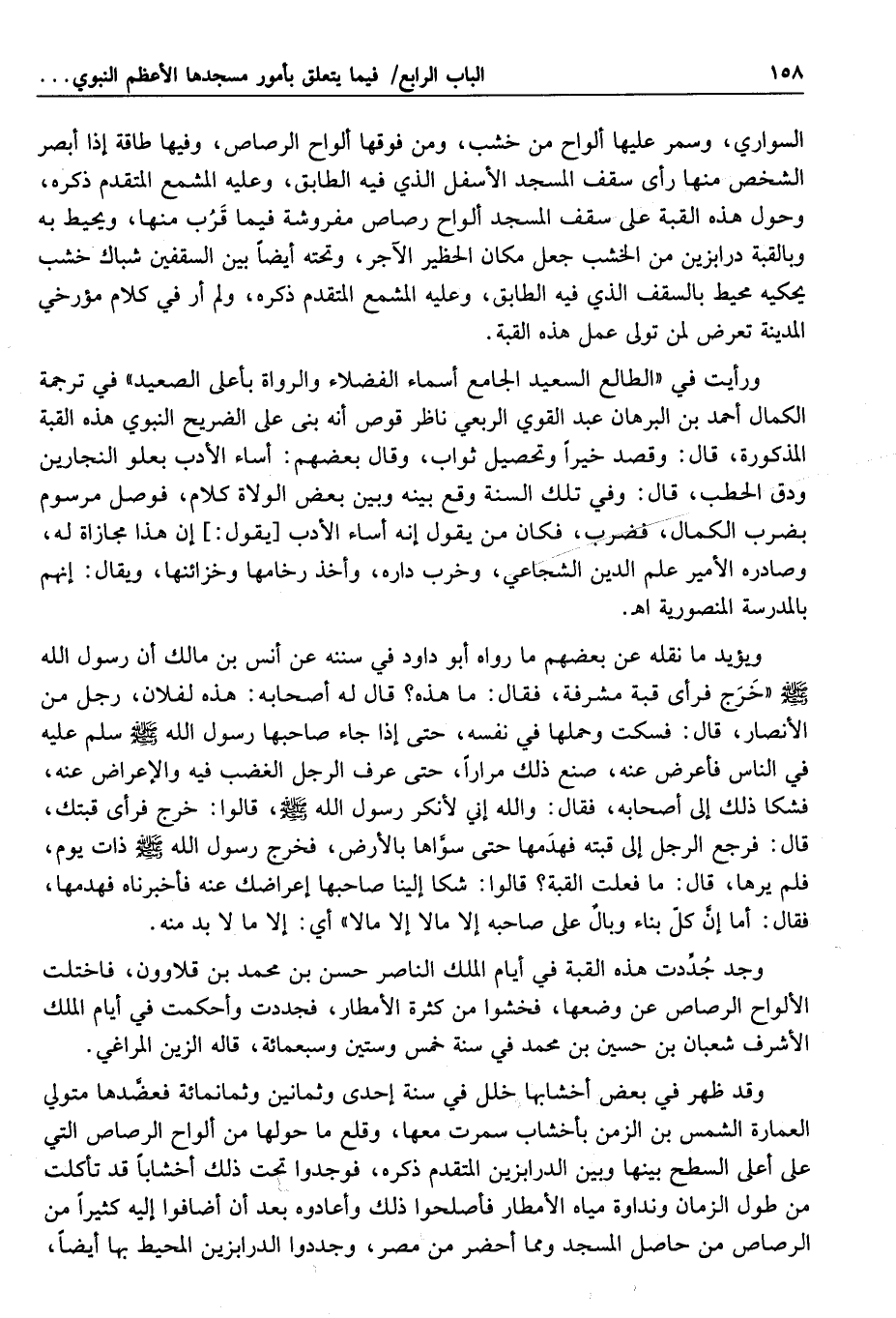 الفصل السابع والعشرون في اتخاذ القبة الزرقاء التي جعلت على ما يحاذي سقف الحجرة الشريفة بأعلى سقف المسجد، تمييزا لها، وإبدالها بالقبة الخضراء والمقصورة الدائرة بالحجرة الشريفة