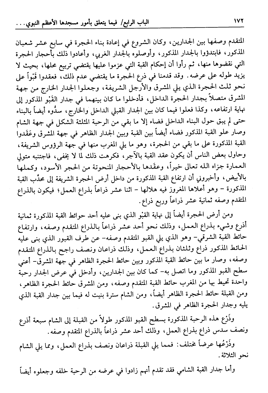 وتأملت آثار ردم الحريق في الجدران فرأيته في بعضها نحو ثلاثة أذرع، وفي بعضها نحو ذراعين، وأخبرني المباشرون لإخراجه بذلك أيضا.