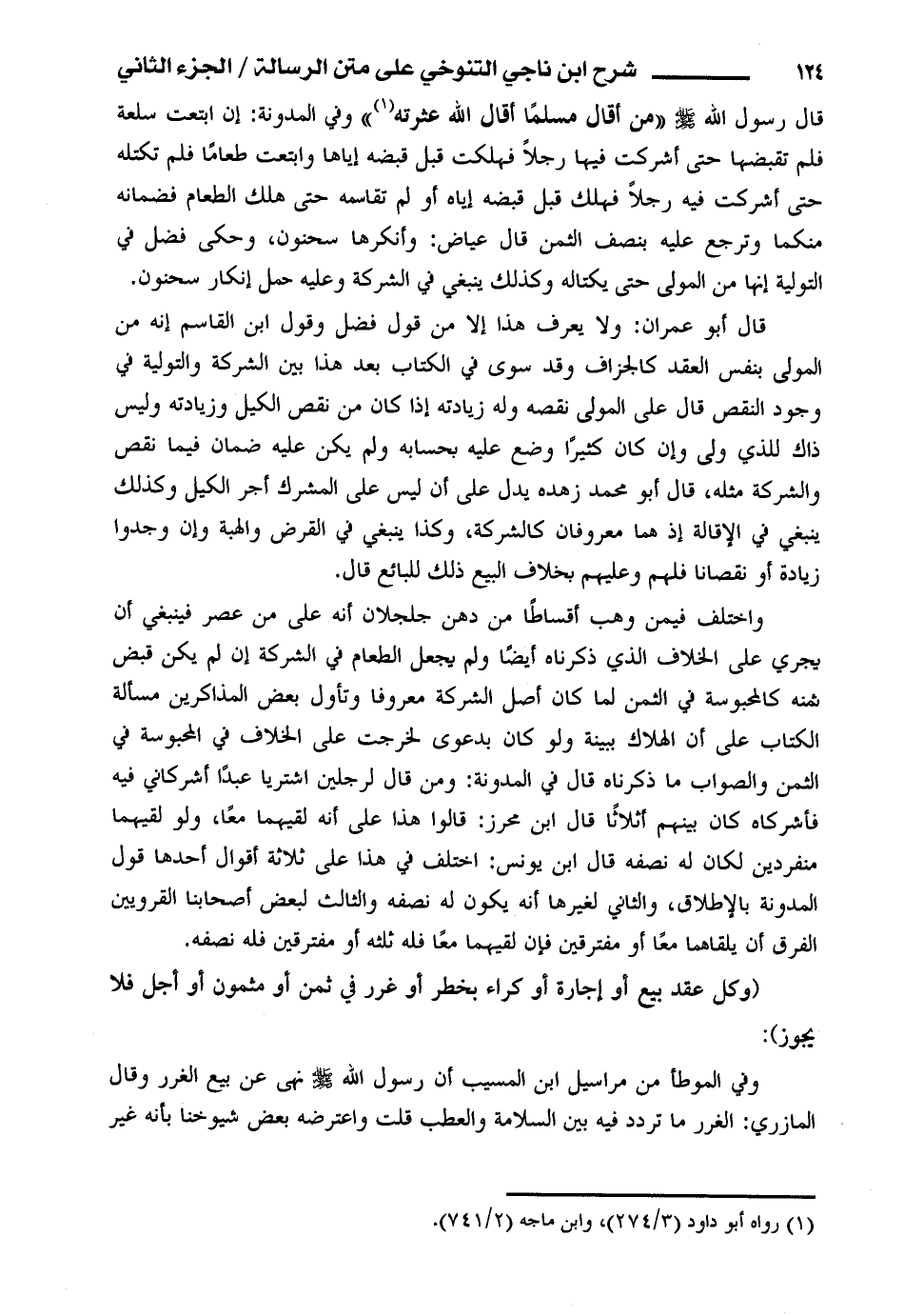 كتاب شرح ابن ناجي التنوخي على متن الرسالة (اسم الجزء: 2)