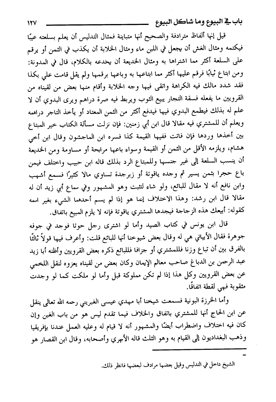 وأما الخرزة البونية فسمعت شيخنا أبا مهدي عيسى الغبريني رحمه الله تعالى ينقل عن ابن الحاج أنها للمشتري باتفاق والخلاف فيما تقدم ليس هو من باب الغبن وإن كان فيه اختلاف واضطراب أيضًا والمشهور أنه لا قيام له وعليه العمل عندنا بإفريقيا وذهب البغداديون إلى القيام به وهو الثلث قاله الأبهري وأصحابه، وقال ابن القصار هو