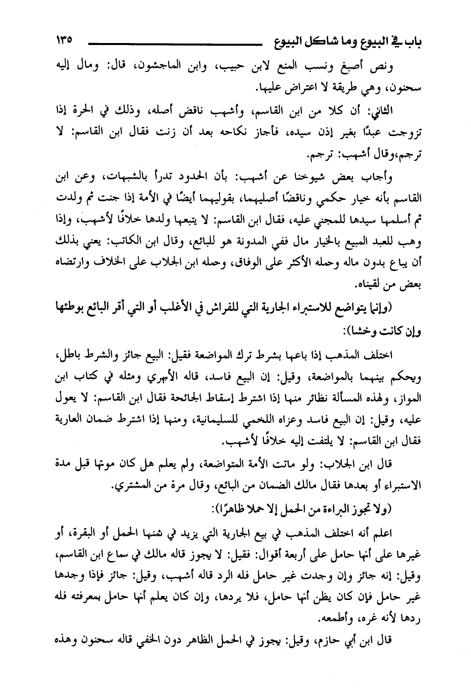 ونص أصبغ ونسب المنع لابن حبيب، وابن الماجشون، قال: ومال إليه سحنون، وهي طريقة لا اعتراض عليها.