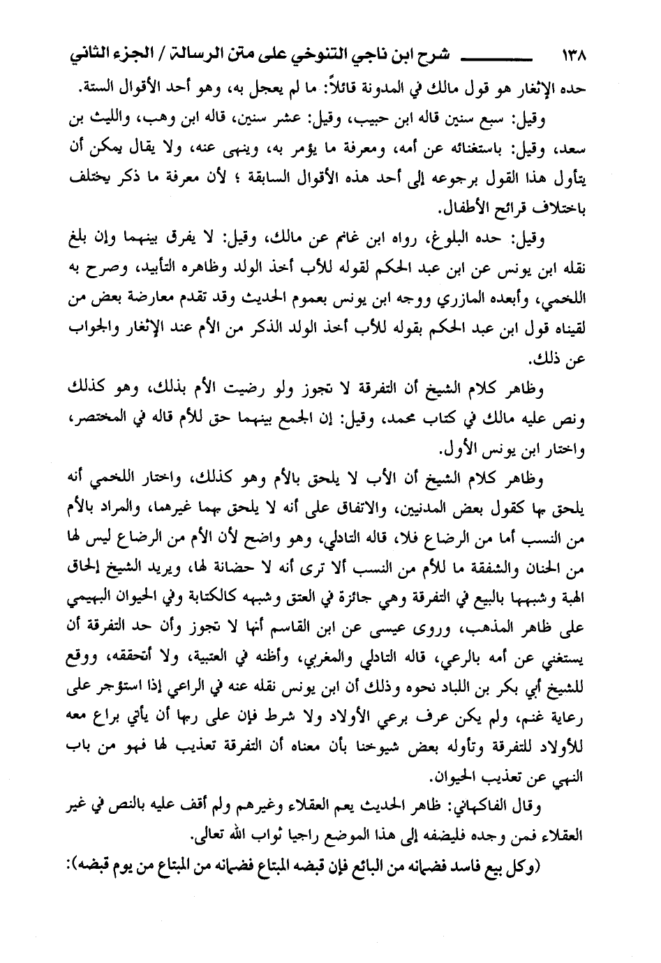 كتاب شرح ابن ناجي التنوخي على متن الرسالة (اسم الجزء: 2)