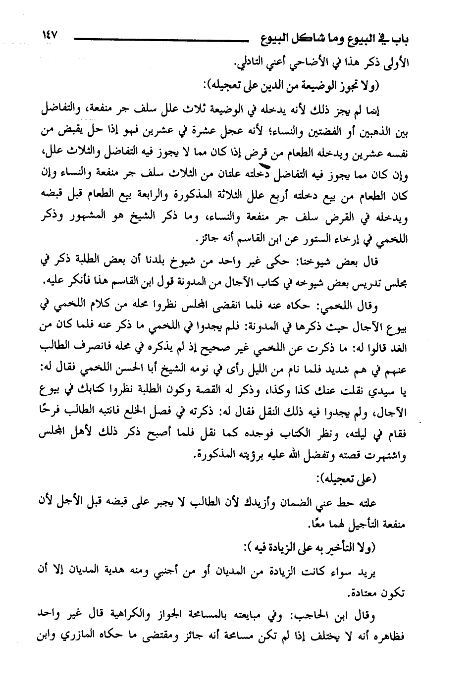 (ولا تجوز الوضيعة من الدين على تعجيله):