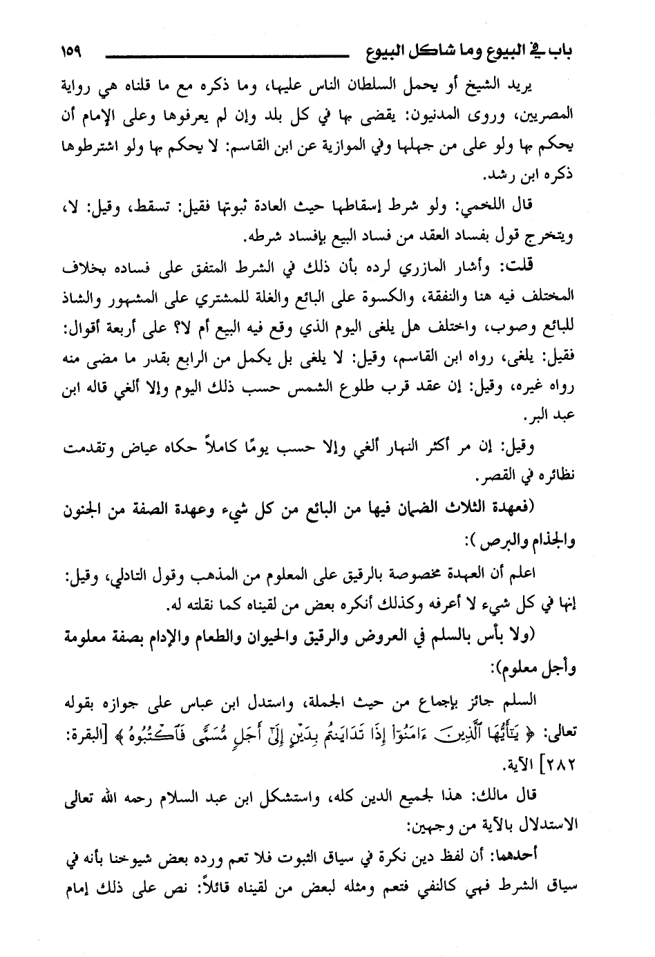 (ولا بأس بالسلم في العروض والرقيق والحيوان والطعام والإدام بصفة معلومة وأجل معلوم):