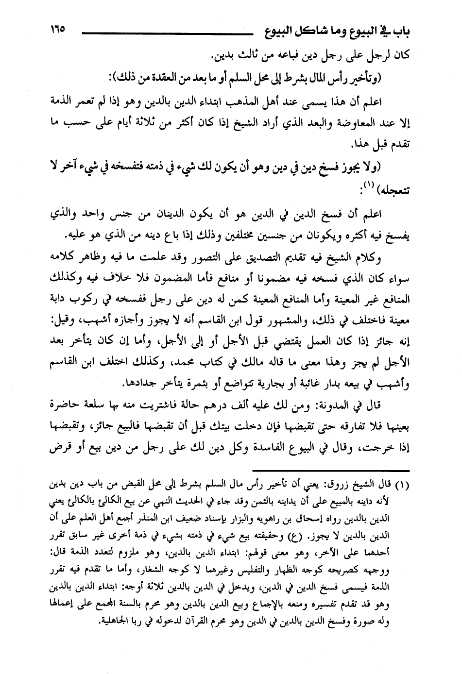 اعلم أن فسخ الدين في الدين هو أن يكون الدينان من جنس واحد والذي يفسخ فيه أكثره ويكونان من جنسين مختلفين وذلك إذا باع دينه من الذي هو عليه.