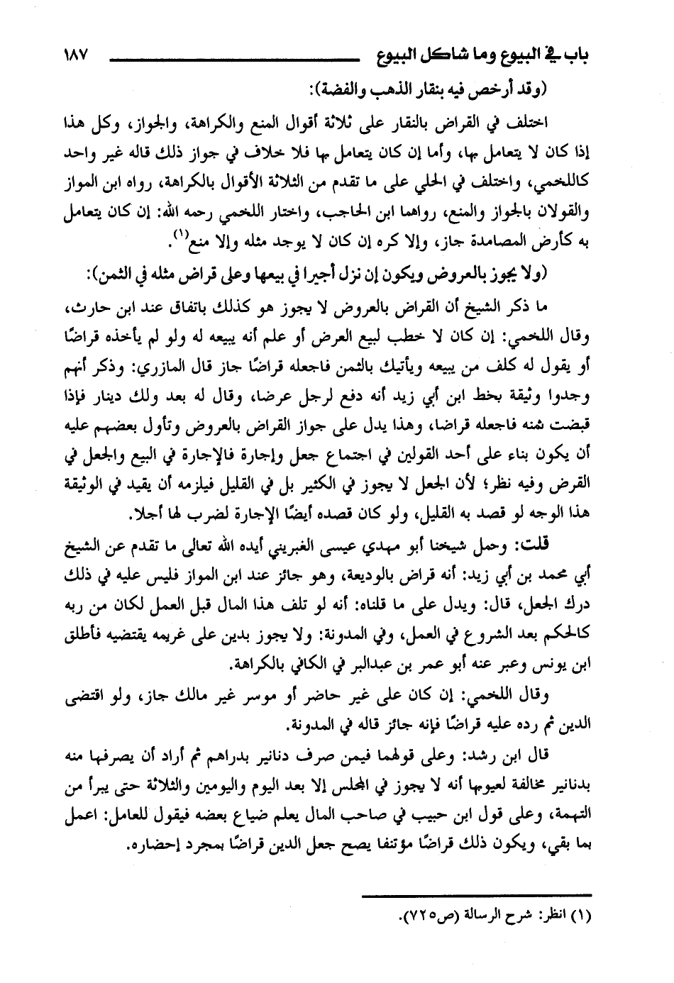 وقال اللخمي: إن كان على غير حاضر أو موسر غير مالك جاز، ولو اقتضي الدين ثم رده عليه فراضًا فإنه جائز قاله في المدونة.