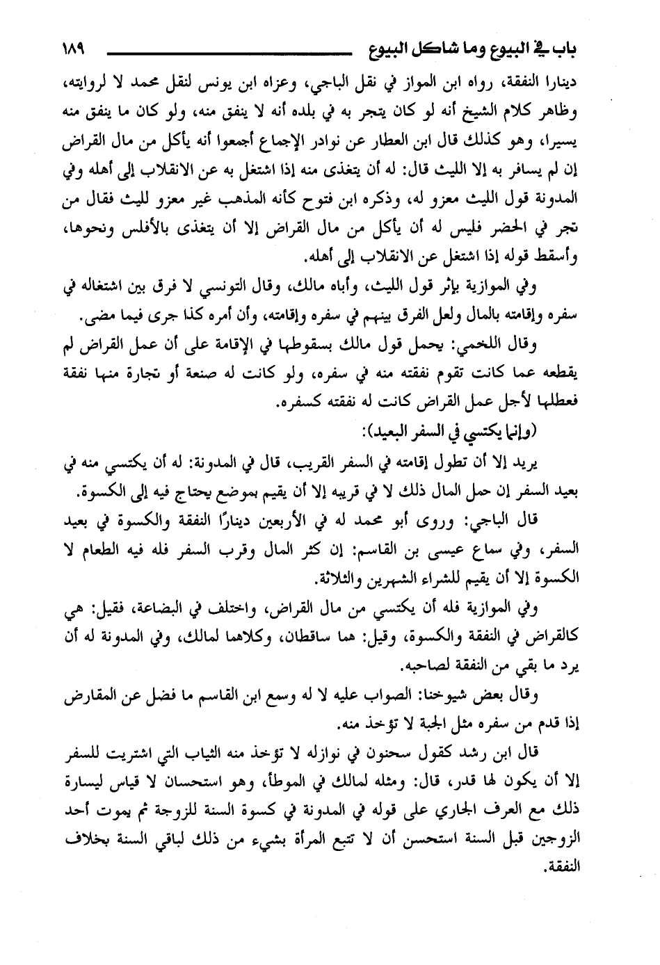 وفي الموازية بإثر قول الليث، وأباه مالك، وقال التونسي لا فرق بين اشتغاله في سفره وإقامته بالمال ولعل الفرق بينهم في سفره وإقامته، وإن أمره كذا جرى فيما مضى.