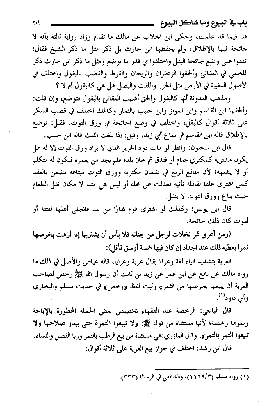 قال ابن رشد: اختلف في جواز بيع العرية على ثلاثة أقوال: