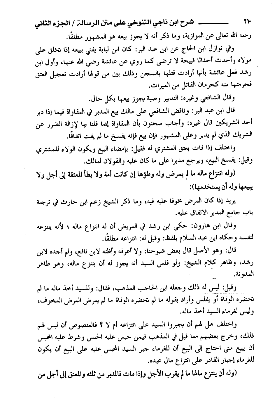كتاب شرح ابن ناجي التنوخي على متن الرسالة (اسم الجزء: 2)